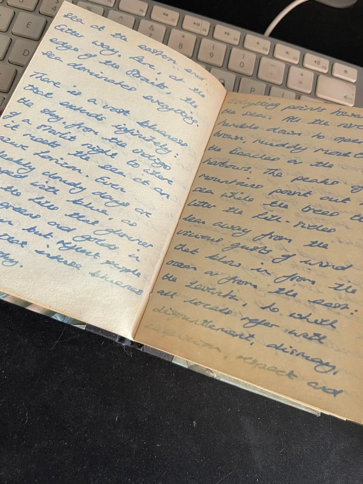 The question got me thinking about my own process for generating ideas for Beyond the Blue and I had a dig around my old notebooks. It’s rare that I throw away my old scribblings but I do have a cull every now and again because this is only a small home and I would be drowning in scraps of paper otherwise. It turns out that I had noted my thoughts on being by the sea in small notebooks here and there, in no particular order. It’s quite clear to me, reading those back, that this process of looking, thinking, jotting down seemingly disparate and incoherent thoughts was how the book of poems came to be.
